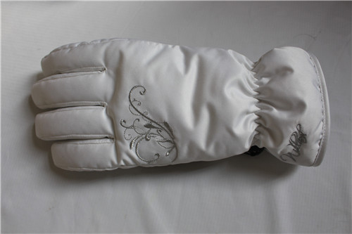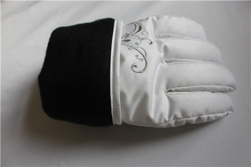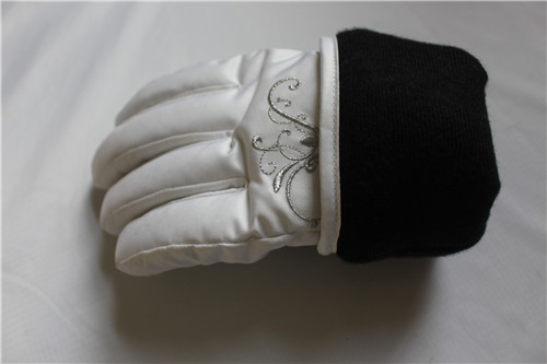 女款透氣保暖戶外騎行滑雪手套,掌心止滑皮有防滑耐磨的作用,內(nèi)里填充物進(jìn)口棉保暖性能強,姆指處植絨布能擦拭眼鏡、汗水,手腕處有車松能調(diào)節(jié)松緊,手背優(yōu)美的花紋圖案。